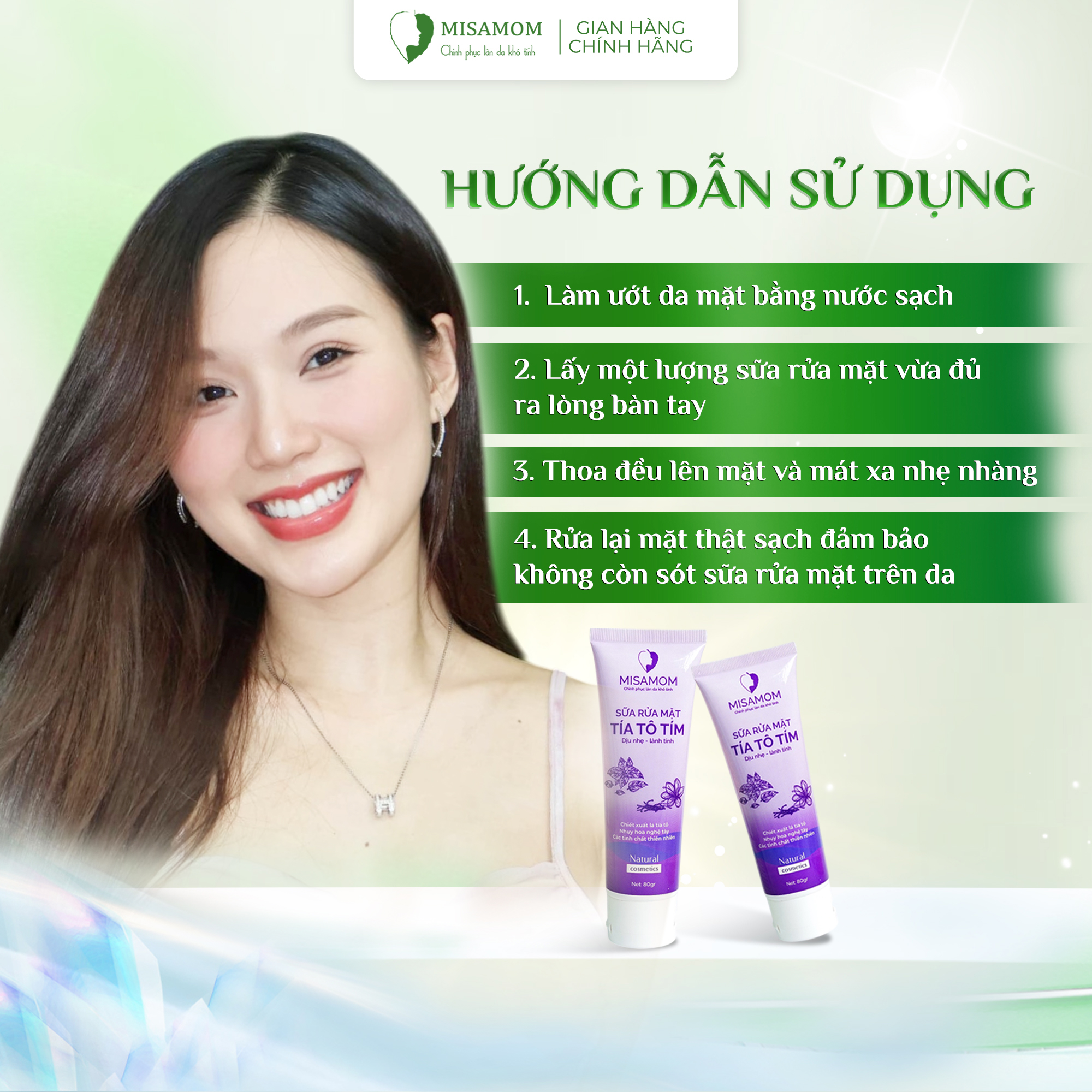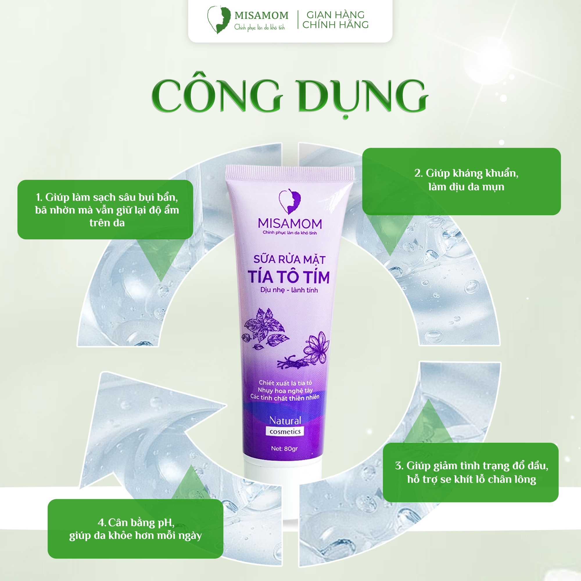- Sữa rửa mặt tía tô tím dưỡng ẩm, sáng da ngừa mụn Misamom 80ml