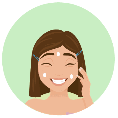 - Bước 2: Lấy một lượng kem vừa đủ, chấm nhẹ lên trán và hai bên má.
